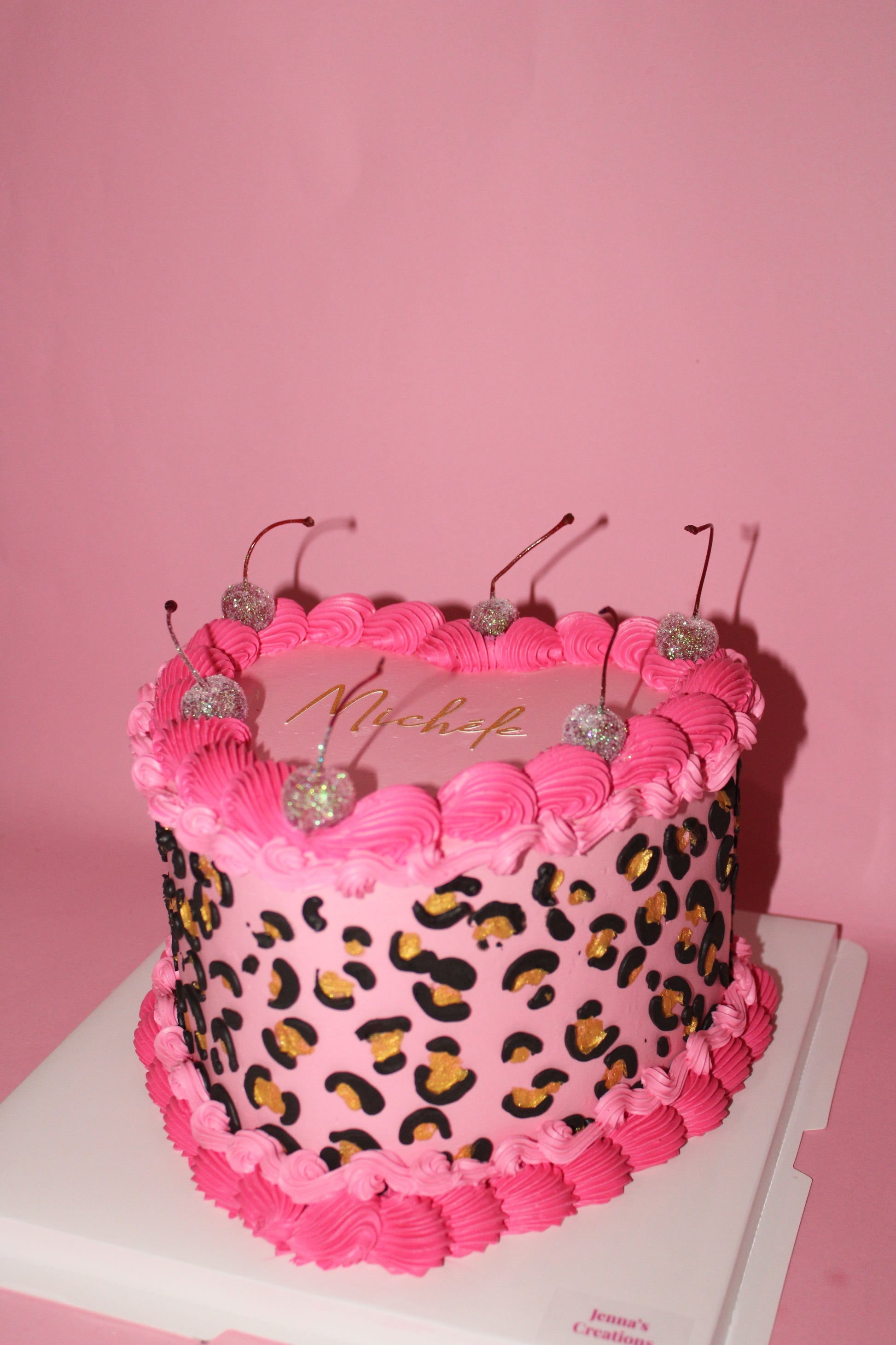 She’s bold, she’s pink, and she’s bringing serious attitude! Decorated with chic leopard print and glitter cherries, this heart-shaped showstopper is perfect for birthdays, girls’ nights, or anyone who loves a little sparkle and sass.